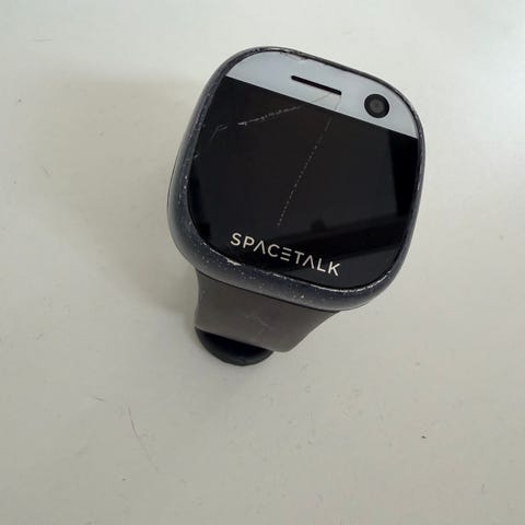 Smartklocka för barn i blå färg med rektangulär pekskärm och silikonarmband. Klockan har flera appar och ikoner på startskärmen och justerbart armband med hål för olika handledsstorlekar. Lämplig som enkel mobil- och aktivitetsklocka för barn.