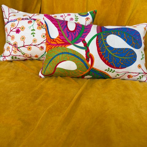 Kuddfodral uppsydda i sömnadsateljé. Tyg Svenskt tenn Teheran. 2 st 38*38 cm , 750 kr/st( lagom till innerkudde 40*40 cm)