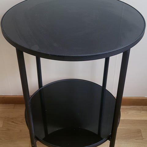 IKEA sidobord runt svart glasmetall