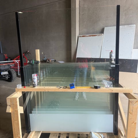 1 st glasparti samma som syns på bilden, för inomhusbruk i bostad eller liknade. Exakta mått behöver kontrolleras på plats. Approximativa mått