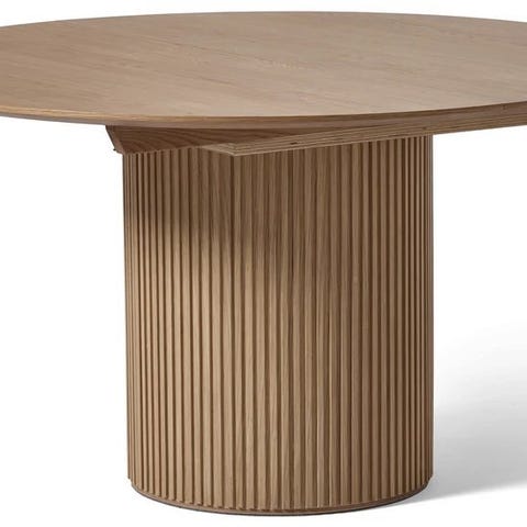 Säljer vårt fina matbord från Mio, modell Cord. Bordet har en dekorativ ribbad pelarfot och bordsskiva i lackerat ekfanér.