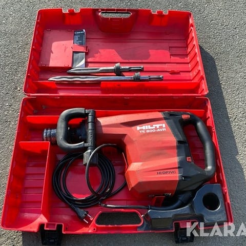 Hilti TE 6-S borrhammare i röd färg. Verktyget är nätanslutet och har pistolgrepp med extra stödhandtag framtill. Maskinen är avsedd för borrning och bilning i hårda material som betong, tegel och sten. Levereras i plastväska enligt bild.