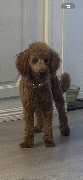 Pappan är en liten mellanpudel på ca 6.8kg, röd/aprikos. En glad, trevlig o lättsam kille, som är go o mysig inne o älskar att hänga på på olika aktiviteter ute 🥰