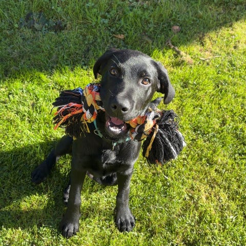 Snäll tik söker nytt hem med engagerad ägare. Blandras av typen Labrador retriever, född: 2022-08-25.