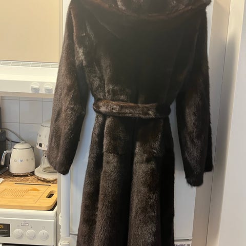 Lång kappa i äkta päls