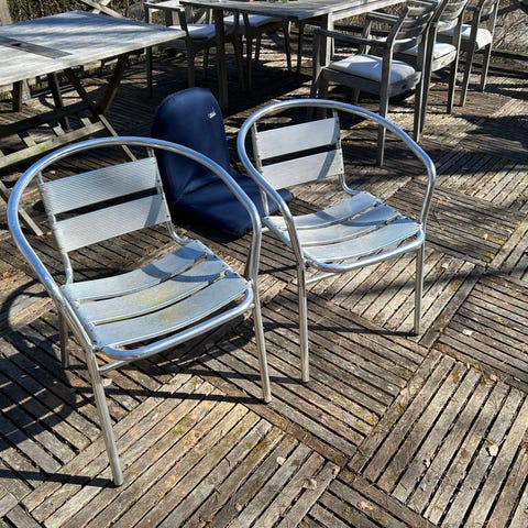 Säljer utemöbler: två stolar och ett bord. Tillgängliga för upphämtning.