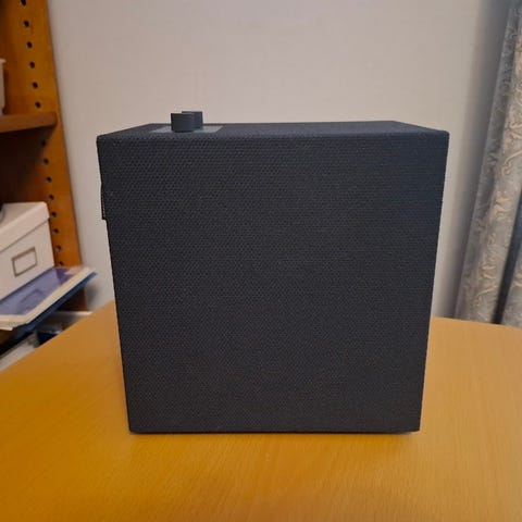 Grön högtalare från urbanears som har bluetooth samt aux och usb