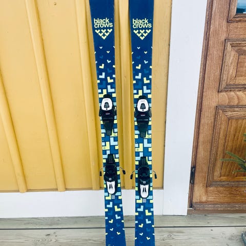 Säljer ett par blå slalomskidor, 117 centimeter, från Techno Pro. Skidorna har integrerade bindningar som är justerbara. Är i ett hyfsat gott bruksskick.