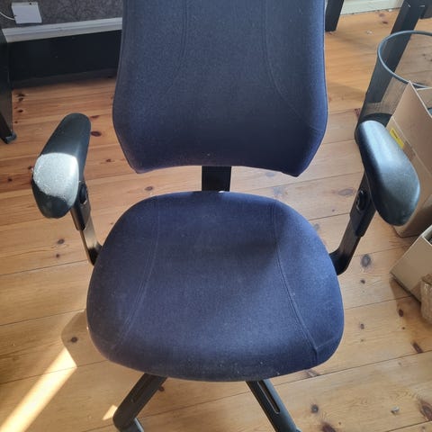 En helt vanlig fungerade kontorsstol med lite färgfläckar.