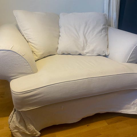 Ikea grönlid schäslong, vit. Extra klädslar till armstöd.