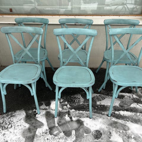 Unika 70 tals stolar med vit metallram och löstagbara gula sitt- och ryggdynor. Stolen har rundade armstöd och stoppade dynor med kviltad söm för ökad sittkomfort. Stolarna är använda men i överlag bra skick. 6 stolar som säljes tillsammans för 12000kr.