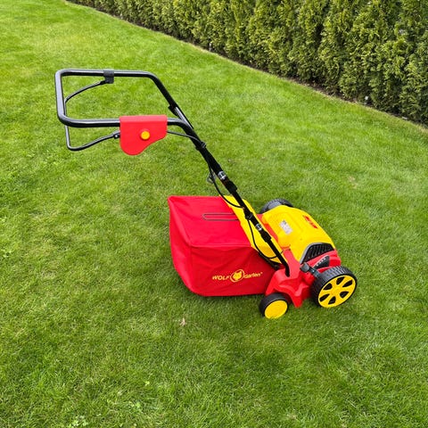 Stiga vertikalskärare med uppsamlare.