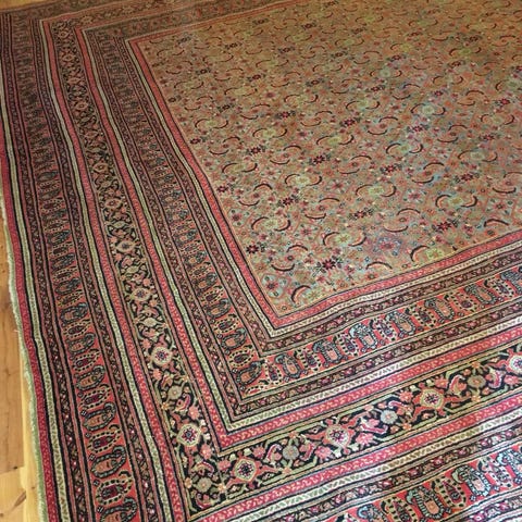 Underbart äkta handknutna persiska matta Maoud stor salong matta högkvalitet ulmaterial nytvättat rökt och djurfria hemma miljöer användes .en äkta matta som lyser upp huset .Underbart sickt leverans kan ordna .