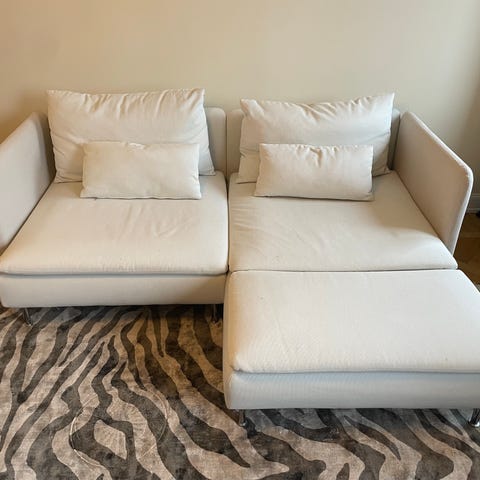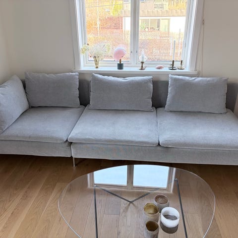 Tresitsaren på höger sida ingår alltså inte, bara delarna som nämns ovan. Väldigt fin och fräsch - passa på att fynda en i princip helt ny soffa!