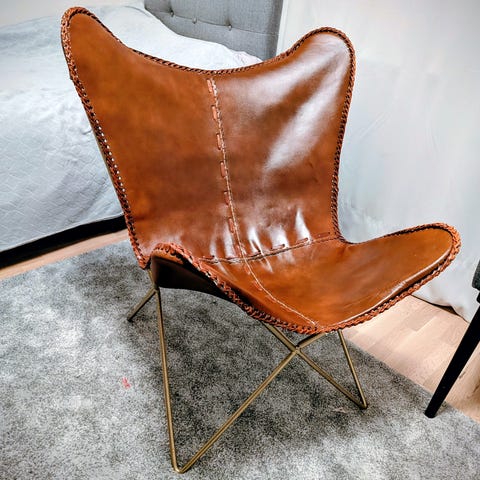 Fladdermusfotölj skinn, mycket gott skick, går att montera ner, måtten är ca.