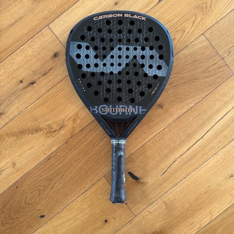 Dopadel padelracket i svart och rosa färg. Racket med rund form och perforerad träffyta. Lämpligt för padelspel och träning. Handtag med grepptejp och handledsrem för säkrare grepp under spel.