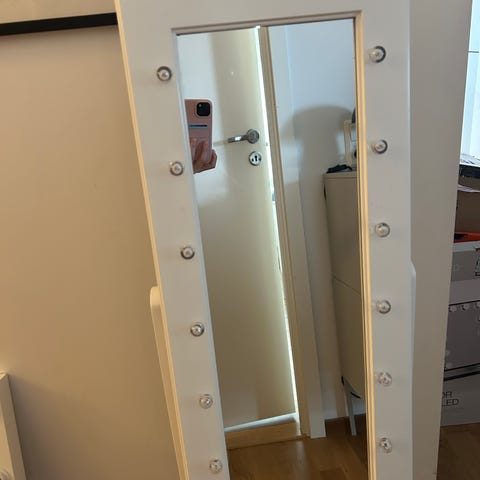 Jätte fin spegel som har batteridrivna lampor som fungerar jätte bra!