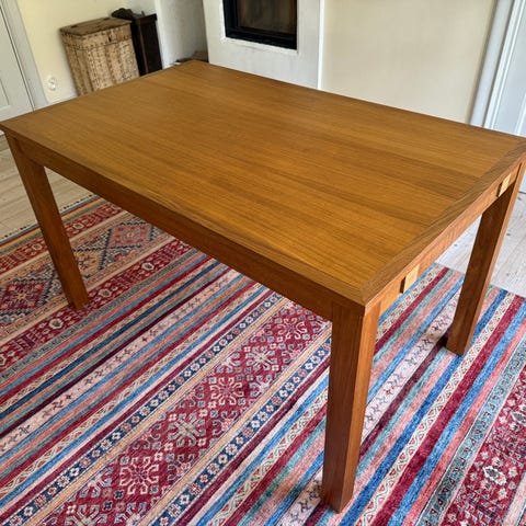 Stort soffbord med utdragbar låda från ena kortsidan och en utdragbar skiva från den andra.