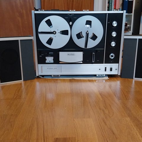 Äldre Stereo med skiva , radio och band i samma . Med fjärrkontroll .