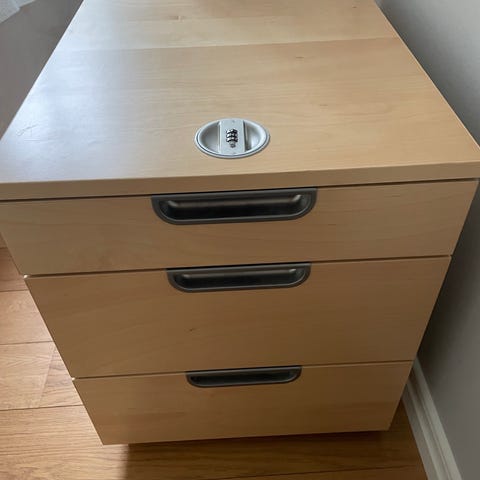 Hängmappsskåp i träfanér med två lådor. Översta lådan är grundare för förvaring av mindre kontorsmaterial, medan den undre lådan är djup och utrustad med skenor för hängmappar i A4-storlek. Skåpet är fristående och anpassat för kontorsmiljö eller hemmakontor. Ytskikt i träfanér med neutral träfärg som passar till de flesta skrivbord och kontorsinredningar.