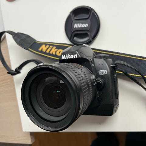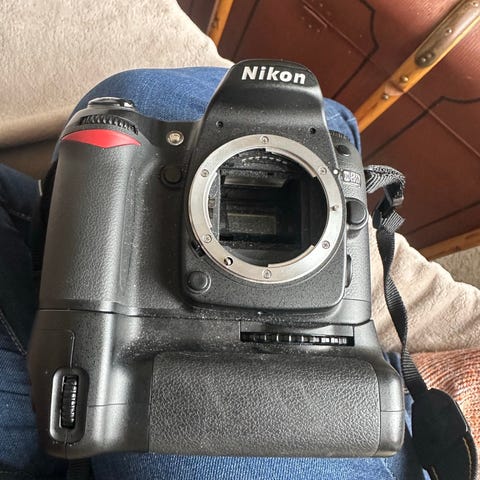 Nikon D80 digital systemkamera. Samma sensor som på Nikon D200 som fått ett uppsving på senare tid - Nikons främsta CCD-sensor innan de gick över till CMOS-teknik. Känd för sina filmlika, rika färger, läs t. ex. här https://www.stevenrobinsonpictures.com/blog/2024/4/14/nikon-d200-colour där det skrivna gäller även för småsyskonet D80. Mycket fint skick. Har lite skav där fingret greppar liksom i princip samtliga kameror från denna era. Inte alls samma nivå av stickighet som på en Nikon F100 eller Minolta Dynax 7 t. ex.