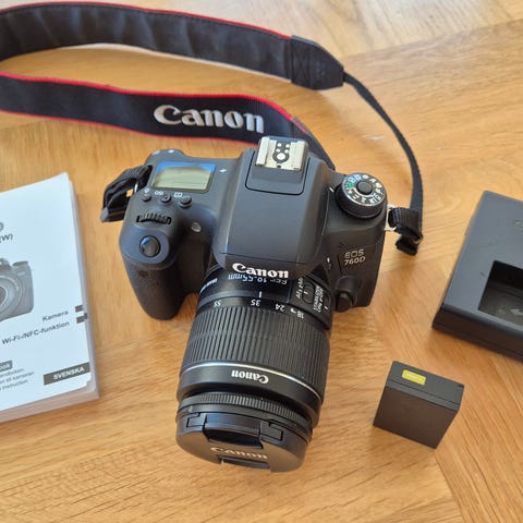 Ingår gör även box, laddare, batteri, samt diverse småpryttlar i boxen (objektivrengöringsvätska, putsduk, tredjeparts fjärrutlösare, eye cover, extra plastskydd för skärmen (ett finns monterat), originalkvitto (inköpt för närmare 10000 en gång i tiden) etc.)