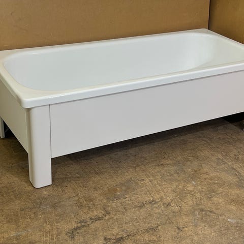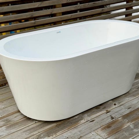 Ett fräscht fristående badkar med ny pop-up bottenventil och rör