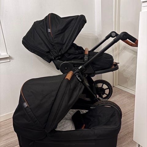 Väl omhändertagen och alla delar har alltid förvarats inomhus. Fantastisk vagn som är säker och lätt att köra i både terräng och stadsmiljö. Bra stötdämpning och stabil på alla underlag.