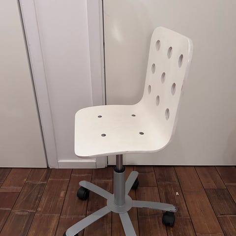 2 fina IKEA stolar för barn i trä, i blå respektive gul färg. Stolarna har ryggstöd med utskurna djurmotiv. På sitsen finns ett löst, grönt, fluffigt sitsöverdrag som knyts fast med band. Passar som sittplats för barn vid litet bord, i lekrum eller barnrum. Fint skick! Inga skador.