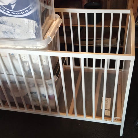 Spjälsäng och skötbord.