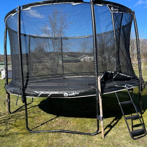 Säkerheten först: Utrustad med ett rejält skyddsnät som sitter ordentligt, så att du som förälder kan känna dig trygg när barnen hoppar.