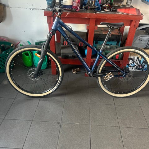 Barncykel med 26" hjul. Cykeln har turkos ram med ljus mittsektion och svarta detaljer som sadel, styre, skärmar och däck. Utrustad med fram- och bakskärm samt reflexer i hjulen. Passar äldre barn eller ungdomar som behöver en cykel i storlek 26" för vardagscykling och fritidsbruk.