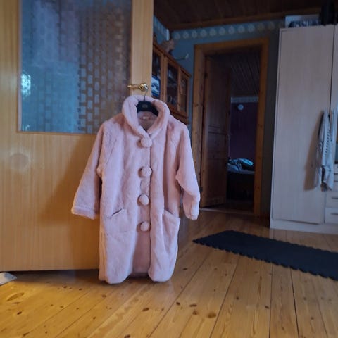 Brun jacka i fuskpäls aldrig använd bara provad. Fodrad och har fickor i sidorna.