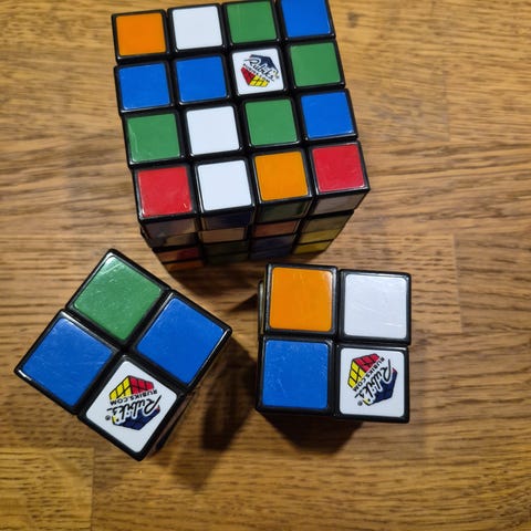 I paketet ingår flera olika modeller, bland annat klassisk kub, större kub med fler rutor, pyramidformad kub och andra mer avancerade varianter. Alla fungerar som de ska och snurrar bra.
