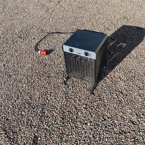 Woods byggfläkt med effekt på 2 kW. Elektrisk värmefläkt med bärhandtag och galler framtill och baktill. Utrustad med vred för inställning av temperatur och fläkthastighet. Passar för uppvärmning av mindre utrymmen som garage, förråd eller arbetsplats inomhus. Ansluts med elkabel och stickkontakt.