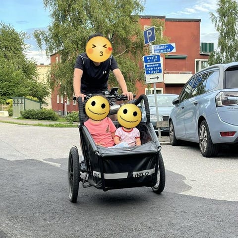 Som sagt en mycket exklusiv lådcykel som även trampas lätt utan assistans vilket man verkligen inte kan säga om andra låd och lastcyklar. Detta förlänger räckvidden markant också. Har aldrig kommit i närheten av att ladda ur ett batteri så dubbla egentligen helt onödigt om man inte ska ta lång semester :-)