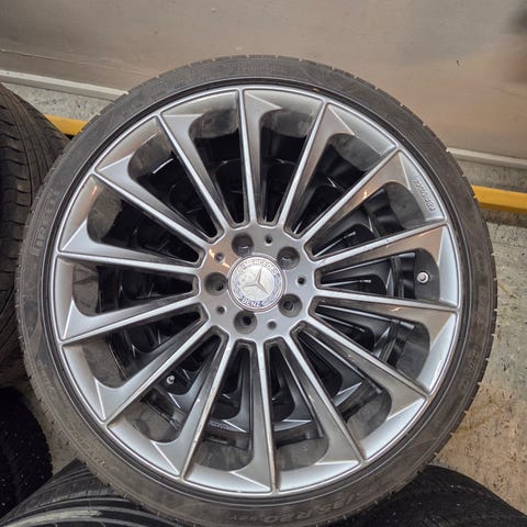 19” AMG turbin fälgar (ej org) med bra sommardäck 235/35-19. Däcken har rullat ca 1000 mil och några fälgar har viss skav. Bultmönster 5/112 och navhål 66,6 och passar Mercedes, Audi, Vw mfl.