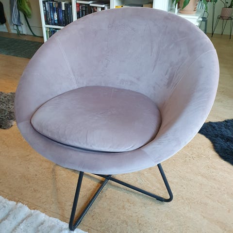 Fint rund sammet fåtölj I bra skick sparsamt använt, ingen fläckar eller slitningar.