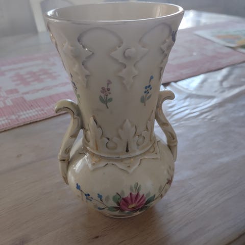 Flerfärgad Vas i keramikoch med blommotiv