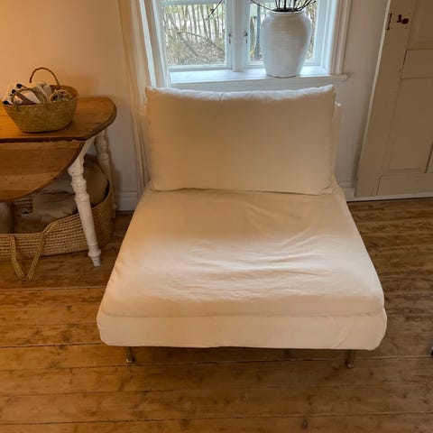 Tyget i linne/bomullsblandning. Benvit. Avtagbart .