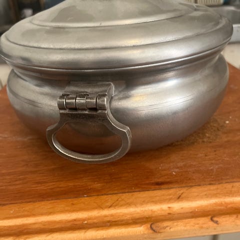 Jag säljer nu burk med lock i kopparfärgad metall. Yttersidan är kopparfärgad medan insidan är i blank metall. Burken har ett runt lock med knopp upptill och medföljer av en separat genomskinlig plastinsats. Lämplig för förvaring av mindre livsmedel eller andra småsaker i kök eller hushåll.