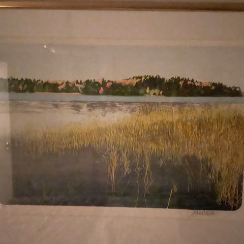 Bladet väldigt lätt missfärgat, ramen kantstött.