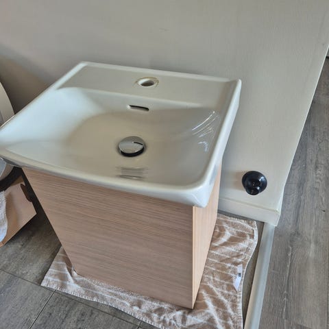 Litet handfat Duravit (vit porslin) samt blandare i mässing