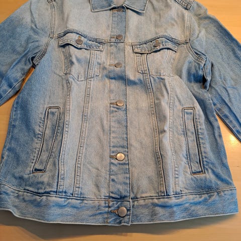 Jeansjacka med sliten look storlek S från Bershka köpt i London. Innerfickor på båda sidorna. Rätt så rymlig i storlek. Sparsamt använd. 120:-