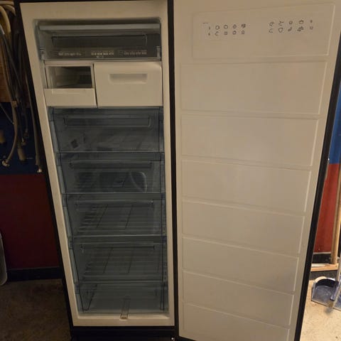 Välfungerande och fin Samsung fryskåp fristående i vitt utförande. Skåpet har flera genomskinliga lådor och hyllor för överskådlig förvaring av matvaror. Invändigt finns separata fack och behållare som underlättar organisering av olika livsmedel och is. Passar som huvudkyl i kök eller som extra frysskåp i exempelvis förråd eller grovkök.