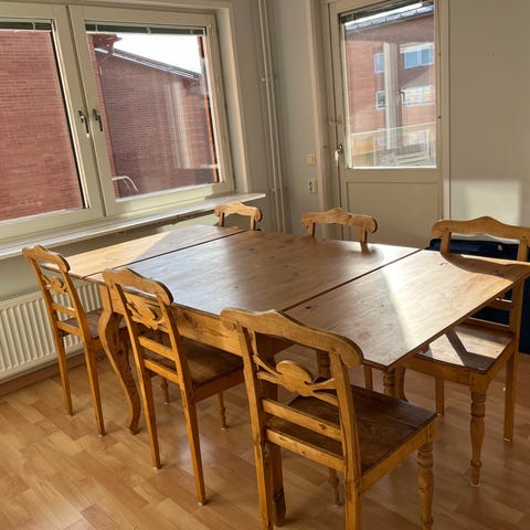 Dining table (120 x 74 x 74 cm) including 4 chairs with seat cushions. In great condition, ready to be picked up in Hamberg.