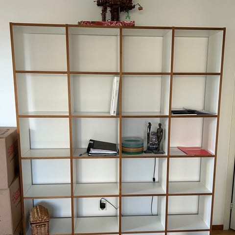 Fin vit bokhylla inköpt på Bolia.