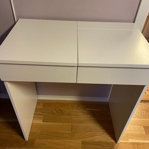 Vitt ALEX skrivbord från Ikea i nyskick. Bordet är varsamt använt men har några enstaka mindre, knappt synliga, märken. Överlag helt och rent. Har stått inomhus men ställdes ut för att fotas.