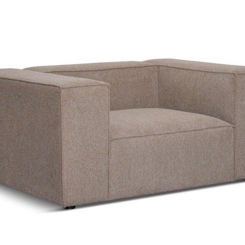 En fin och stor fåtölj beige mocka 135x89. Kallas även kärleksfåtölje. Nypris 13 000 kr