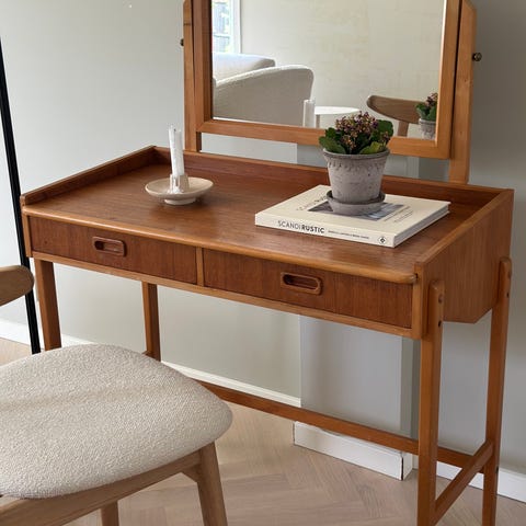 SKRIVBORD, 1960-tal, teak, skåpsdörr samt 5 lådor.